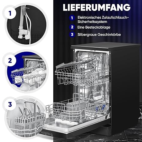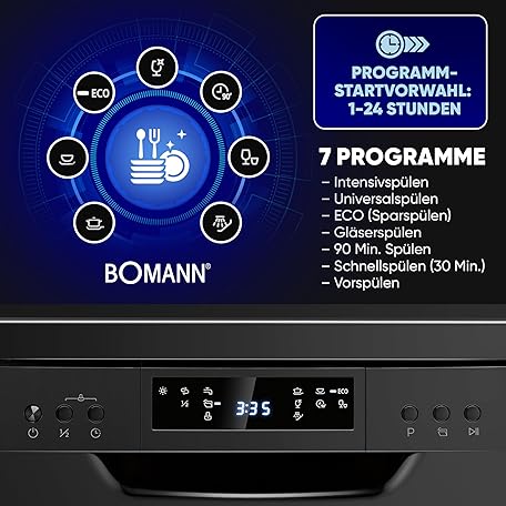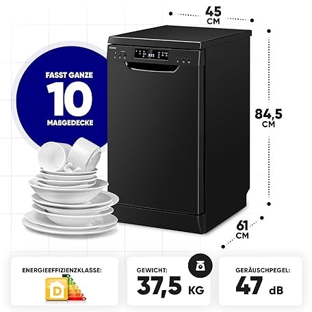 Thông tin sản phẩm Bomann Dishwasher 45 cm, 10 Place Settings, Dishwasher Stand or Substructure, 7 Programmes & 2 Spray Levels, Dishwasher with Start Dial, Dishwasher Can Be Under-Assembled GSP 7418, Black