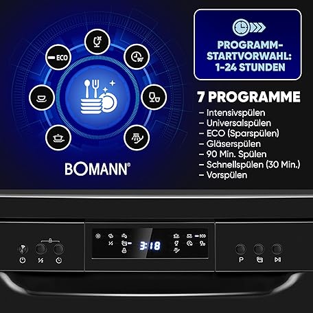 Thông tin sản phẩm Bomann Dishwasher 60 cm, 14 Place Settings, Dishwasher Stand or Substructure, 7 Programmes & 2 Spray Levels, Dishwasher with Start Dial, Dishwasher Can Be Under-Assembled GSP 7419 Black