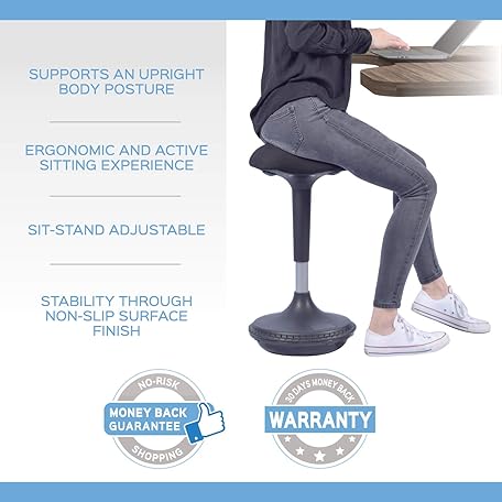 Thông tin sản phẩm bonmedico Ergonomic Office Stool - Desk Chair Alternative for Desk, Standing Desk, Standing Desk - Standing Aid Stool - Height Adjustable with Swing Effect