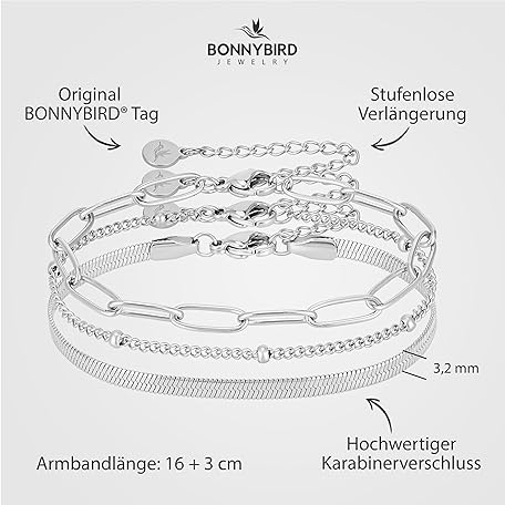 Sản phẩm BONNYBIRD® BonnyShine Premium Stainless Steel Bracelet Set for Women in Silver, Gold & Rose Gold, 100% Waterproof & Skin-friendly đang được bán với giá ưu đãi là $57.334 tại nước Đức.
