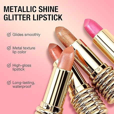 Sản phẩm Boobeen Glitter Lipstick for Women Metallic Lip Stick Sparkling Shine Lip Makeup, Bold Smooth Lip Colour High Pigment Durable, Creamy Lipstick Full Coverage đang được bán với giá ưu đãi là $12.8402 tại nước Đức.