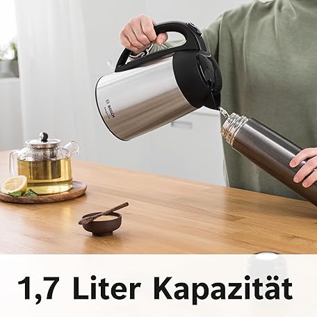 Sản phẩm Bosch DesignLine TWK3P420 Wireless Kettle, Splash-free, Cup Indicator, Overheating Protection, 1.7 L, 2400 W, Stainless Steel/Black đang được bán với giá ưu đãi là $52.0475 tại nước Đức.