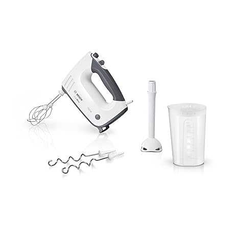 Bosch ErgoMixx MFQ37470 Hand Stirrer, 750 W, Mixing Base, Stainless Steel Mixing Tools, 5 Levels Plus Turbo Button, White/Grey