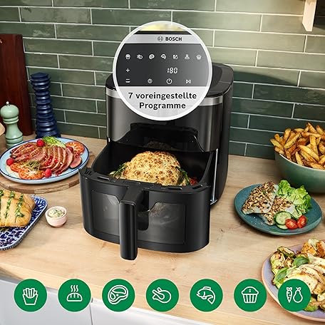 Thương hiệu Bosch là cái tên nổi tiếng được rất nhiều khách hàng trên thế giới chọn lựa. Với kiểu dáng đẹp mắt, sang trọng, sản phẩm Bosch MAF671B0 Series 6 Hot Air Fryer, XXL 7.2 L Capacity, 7 Preset Programmes, Illuminated Viewing Window, Up to 65% Faster Cooking, AirFryer in Black là sự lựa chọn hoàn hảo nếu bạn đang tìm mua một món cho riêng mình.