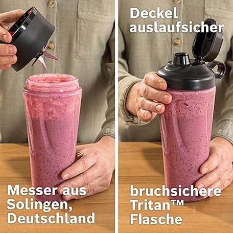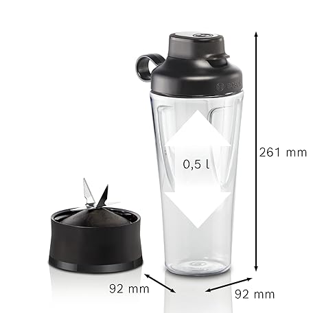 Thông tin sản phẩm Bosch MMB6141B VitaPower Series 4 Blender, 1200 W, 30,000 rpm, 1.5 L Container Tritan, Black & Set ToGo Bottle MMZBTK1B, Smoothie ToGo Bottle 0.6 L, Shatterproof