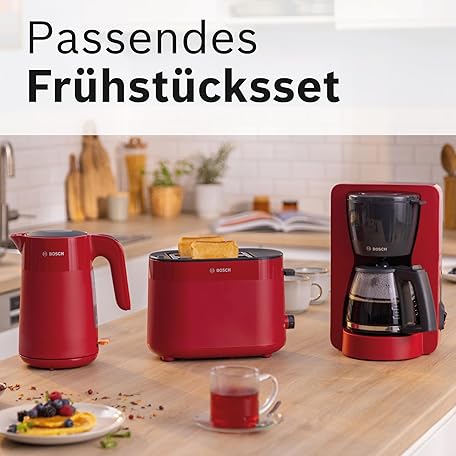 Thông tin sản phẩm Bosch MyMoment TWK2M164 Wireless Kettle Automatic Shut-Off, Overheating Protection, Cup Display, Removable Limescale Filter, Boil Dry Protection, Automatic Steam Stop, 1.7 L, 2400 W, Matte Red