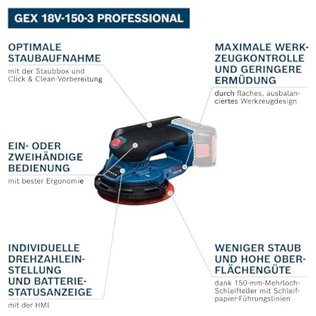 Sản phẩm Bosch Professional GEX 18V-150-3 Cordless Random Orbital Sander System Including L-BOXX (without Battery/Charger) đang được bán với giá ưu đãi là $344.2547 tại nước Đức.