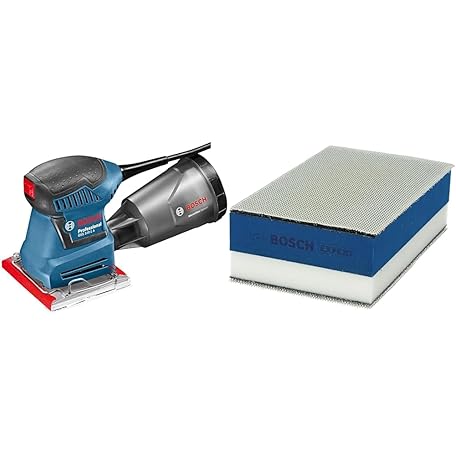Bosch Professional Schwingschleifer GSS 140-1 A (inkl. Staubbox mit Microfilter, 2x Schleifblatt, 1x Schleifplatte, Lochwerkzeug, Karton) + Expert Dual Density Handschleifblock