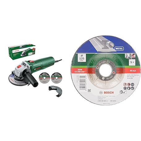 Bosch UniversalGrind 7-125 Compact Angle Grinder (750 W; 2 x Cutting Discs; 1 x Sanding Disc; in Box) + 6 x Cutting Discs (Metal, Suitable for Hand-Held Angle Grinders Diameter 125 mm, Accessories)
