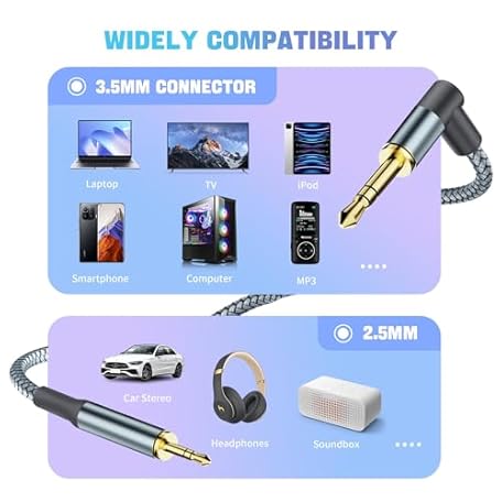 Thông tin sản phẩm Bose 2.5mm to 3.5mm Aux Cable Adapter Replacement Audio Stereo Jack Male to Male Compatible with Bose 700 QuietComfort QC45 QC35II QC35 QC25 Headphones, JBL Bluetooth Headphones, 1.2m