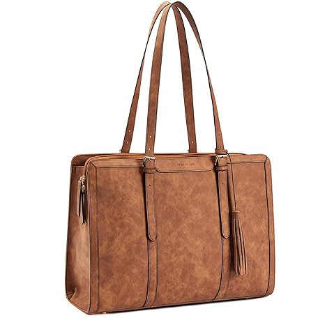 BOSTANTEN Damen Laptop Handtasche 15.6 Zoll Aktentasche PU Leder Schultertasche Frauen Businesstasche Große Shopper Tasche mit 3 Fächern,Braun