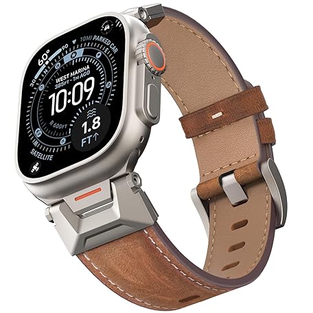 • Bouixel Lederarmband kompatibel für Apple Watch Ultra 3 Armband 49mm 46mm 45mm 44mm 42mm, Top Grain Echtes Leder Band mit Metallverbinder für iWatch Ultra 2/1 Series 11 10 9 8 7 6 5 4 3 SE