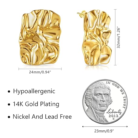 Sản phẩm BOUTIQUELOVIN Dupes Eckig Ohrringe Gold Stecker 14K Chunky Ohrstecker Gold für Frauen Freundin Mama Mädchen đang được bán với giá ưu đãi là $17.658 tại nước Đức.