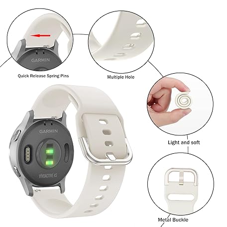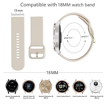 Thông tin sản phẩm Bracelet for Garmin Vivoactive 4S/Venu 2S/Venu 3S/Vivomove 3S, 18 mm Silicone Bracelet for Fossil Women's Gen 6/Fossil Women's Gen 5E/Fossil Women's Q Venture HR Gen 4/Gen 3, Starlight