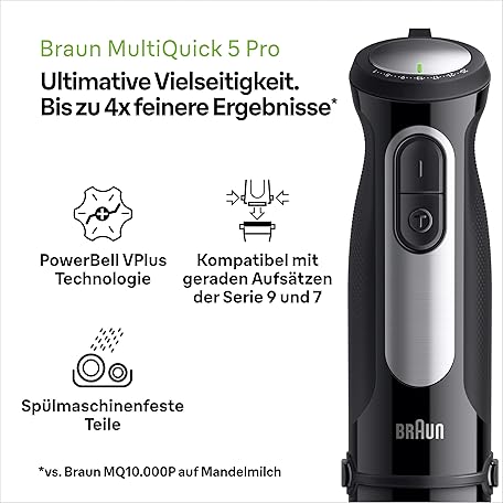 Thông tin sản phẩm Braun MultiQuick 5 Pro MQ55236M Hand Blender - Electric Hand Blender with 25 Speeds, EasyClick Plus System for Accessories, 3-Piece Accessory Set, 1000 Watt, Black