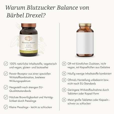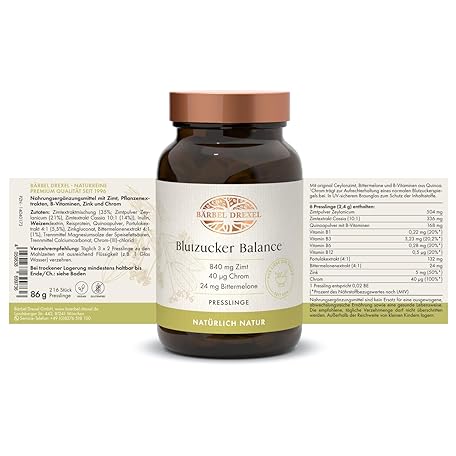 Sản phẩm BÄRBEL DREXEL Blood Sugar Balance with Cinnamon, Chrome, Bitter Melon, Quinoa, Zinc and Purslane (Pack of 216) Natural Dietary Supplement Natural Medicine Blood Sugar Levels đang được bán với giá ưu đãi là $30.5091 tại nước Đức.