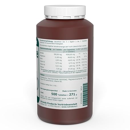 Sản phẩm Brewer's Yeast 500 mg Vitamin Tablets Pack of 500 with Important B Vitamins for Beauty Care from the Inside đang được bán với giá ưu đãi là $21.6147 tại nước Đức.