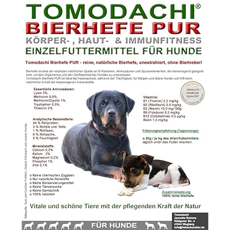 Sản phẩm Brewer's Yeast Dog, BARF Additive, Pure Brewer's Yeast without Trever, Natural Pure, Skin and Coat, Rich in Vitamins, Minerals for Intestinal Flora, Immune System, Appetite, Skin, Claws, Fur Shine, đang được bán với giá ưu đãi là $15.2164 tại nước Đức.