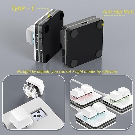 Thông tin sản phẩm BRIMFORD 2 Buttons Mini Keyboard - Custom Keypad - Mechanical RGB Gaming Keyboard, Programmable, Macro, Custom, Compact, Type-C, for Windows & Mac (White, Two Keys/Empty)