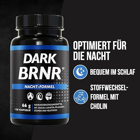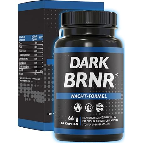 Thông tin sản phẩm BRNR DARK BRNR Nacht-Formel mit Melatonin und L-Carnitin, Stoffwechsel-Rezeptur mit Cholin und Vitamin B6, 120 Kapseln