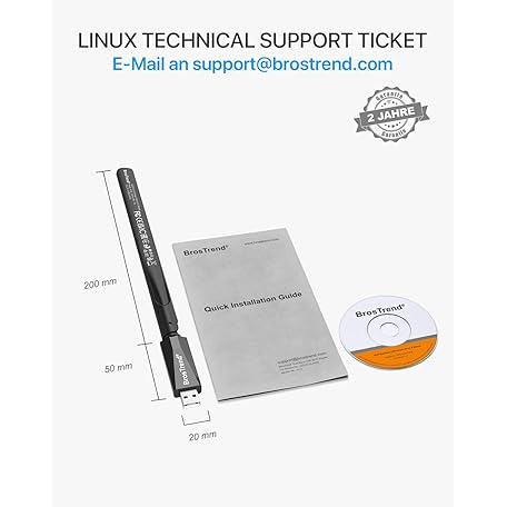 Thông tin sản phẩm BrosTrend AC650 Linux USB WLAN-Stick, Kompatibel mit Kali, Ubuntu, Mint, Debian, Kubuntu, Lubuntu, Xubuntu, Mate, Zorin, PureOS, Raspberry Pi 2+, Windows 11/10/7, 5GHz / 2.4GHz WiFi, 5 dBi-Antennen