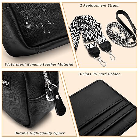 Thông tin sản phẩm BROTOU Mobile Phone Shoulder Bag, Genuine Leather Crossbody Bag with 2 Wide Shoulder Strap, Card Holder, Black Shoulder Bag, Women's Leather Shoulder Bag, Women's Small Bag with 3 Compartments
