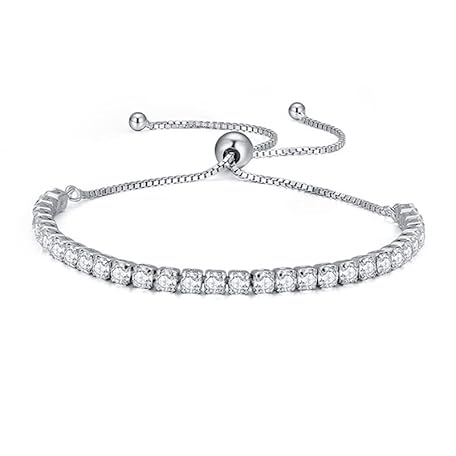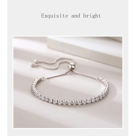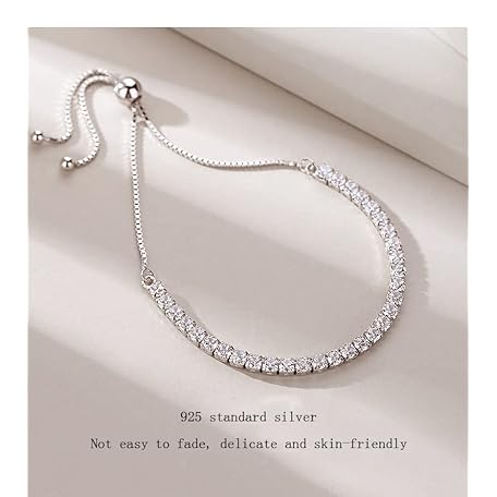 Thông tin sản phẩm BSLVWG Bracelet for Women, Sterling Silver Tennis Bracelet, Crystal Slider Bracelet, Women's Bracelet, Sparkle Diamond Cubic Zirconia, Adjustable Bracelet, Lady Bracelet, Gift for Christmas