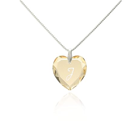 Buchstaben Kette, Kinderkette 925 Sterling Silber mit SWAROVSKI ELEMENTS Herz Anhänger Golden Shadow Herz und individueller Gravur " J "