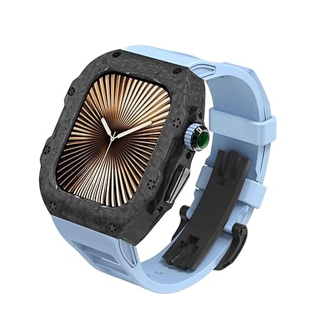 BUDAY Luxury Carbon Fiber Watch Case Modification Kit for Apple Watch S10 46mm for iWatch Series Ultra 2 49mm 9 8 7 6 5 4 SE 44mm 45mm Bezel (Blue, 49mm)