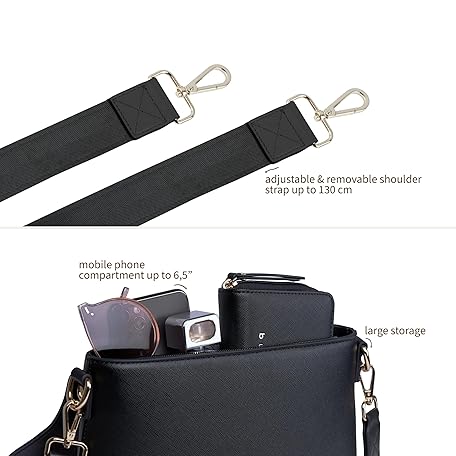 Thông tin sản phẩm bugatti Ella Schultertasche für Damen, Frauen-Umhängetasche in Saffiano-Art aus Kunstleder, schwarz
