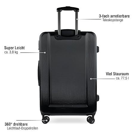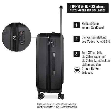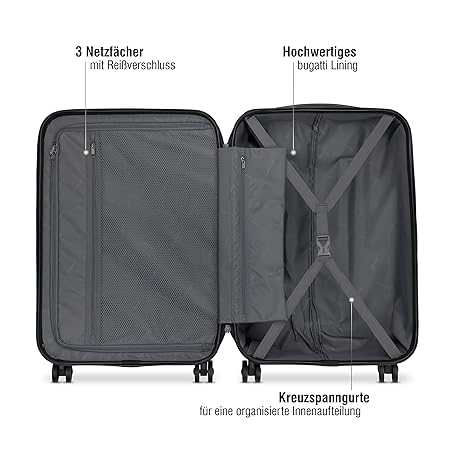 Thông tin sản phẩm bugatti Lima 4-Wheel Hard Case (S,M,L) and Suitcase Set with TSA Combination Lock, black, Suitcase