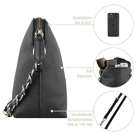 Thông tin sản phẩm Bugatti Passione Women's Small Handbag - Faux Leather Bag, Shoulder Bag Women Small, black, Elegant