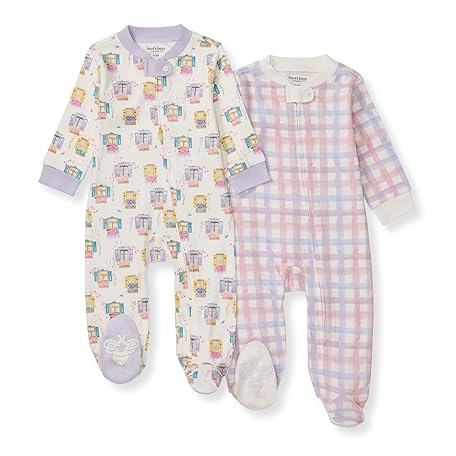 Burt's Bees Baby Baby Girls' Organic Cotton Sleep and Play Footed Pyjamas, One-Piece Zip Front Romper, Essentials Toddler Sleepers (Pack of 2)