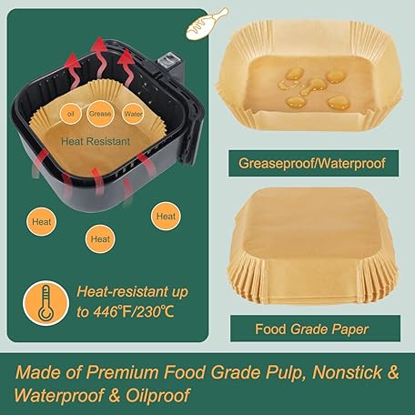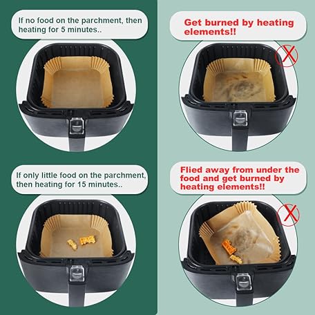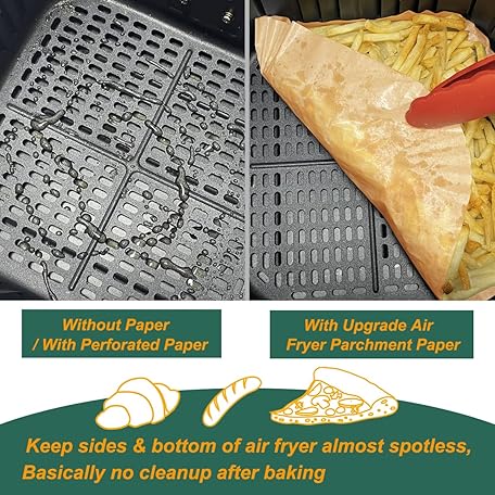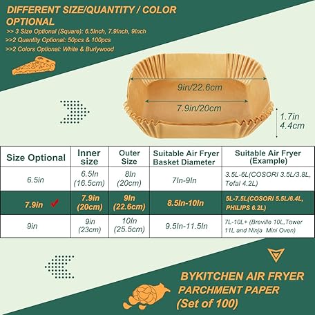 Thông tin sản phẩm BYKITCHEN Pack of 100 Airfryer Baking Paper for Philips 6.2L/Cosori 5.5L, 6L, 6.2L, 20 cm - 24 cm, Hot Air Fryer Baking Paper, Airfryer Accessories for Tefal 5L, Ninja Speedi5.7L Fryer