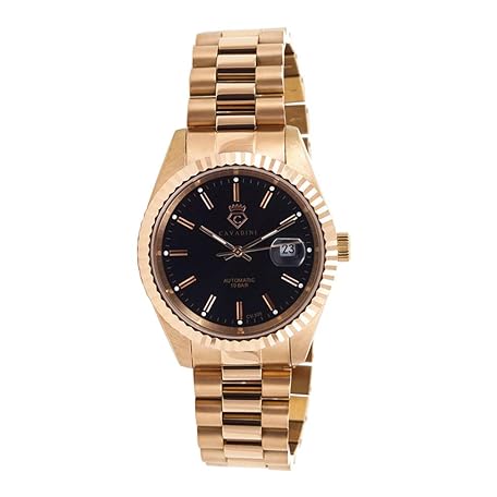 C CAVADINI Herren-Armbanduhr Leonardo Analog Automatik mit Edelstahlarmband CV-335 (schwarz/Rosegold)