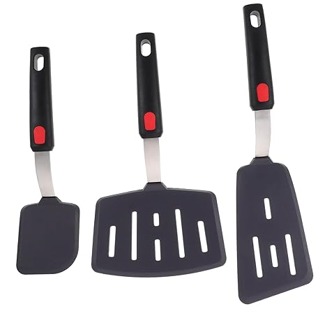 Cabilock 3stücke Silikon Pfannenwender Für Küche Hitzebeständiger Kochspatel Mit Abgerundeten Kanten Wiederverwendbarer Bratpfannenwender Für Beschichtete Pfannen Multifunktions-topfspatel