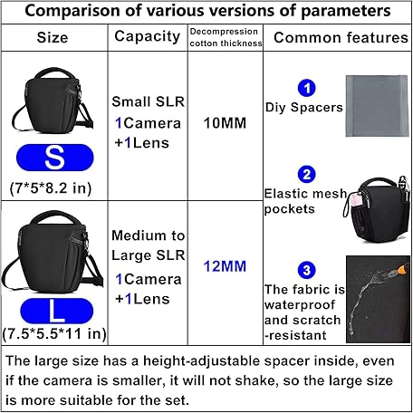 Thông tin sản phẩm CADeN DSLR/SLR Camera Shoulder Bag Belt Bag with Adjustable Shoulder Strap, Compatible with Nikon, Canon, Sony Mirrorless Cameras, Waterproof, black, Backpack