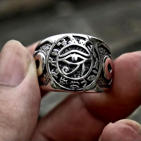 Sản phẩm Caiduoduo Egyptian Pharaoh Eye of Horus Rings for Men Vintage Rune Amulet Stainless Steel Ankh Cross Ring Egypt Jewellery Gift đang được bán với giá ưu đãi là $20.0451 tại nước Đức.