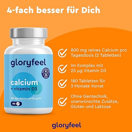Thương hiệu gloryfeel là cái tên nổi tiếng được rất nhiều khách hàng trên thế giới chọn lựa. Với kiểu dáng đẹp mắt, sang trọng, sản phẩm Calcium Tabletten 800 mg + Vitamin D3 1000 I.E. - Kalzium aus Calciumcarbonat Hochdosiert - D3 zur Unterstützung der Calcium-Aufnahme* - 180 Tabletten für 3 Monate - Laborgeprüft, ohne Zusätze là sự lựa chọn hoàn hảo nếu bạn đang tìm mua một món cho riêng mình.