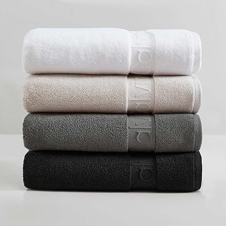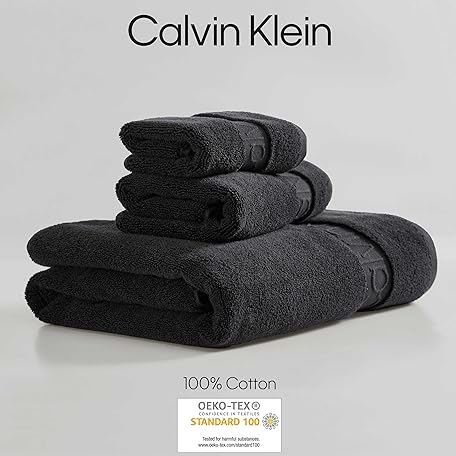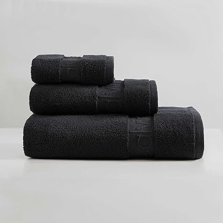 Calvin Klein - Bath Towels, Super Soft Premium Cotton Towels with Zero Twist Construction, Oeko-Tex Certified (Iconic Solid Black, 3-Piece)