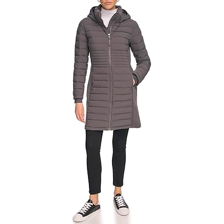 Calvin Klein Damen Lange, Pufferjacke Daunenmantel, Leichtes, geschmiedetes Eisen, M