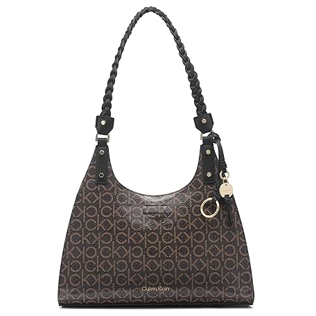Calvin Klein Damen Shelly Novelty Umhängetasche, Braun/Khaki/Schwarz Lack