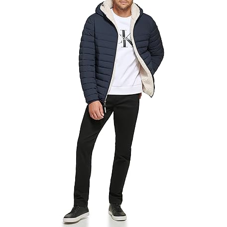 Thông tin sản phẩm Calvin Klein Herren Mid-Weight Sherpa Lined Puffer Jacke, Hooded Down True Navy, L