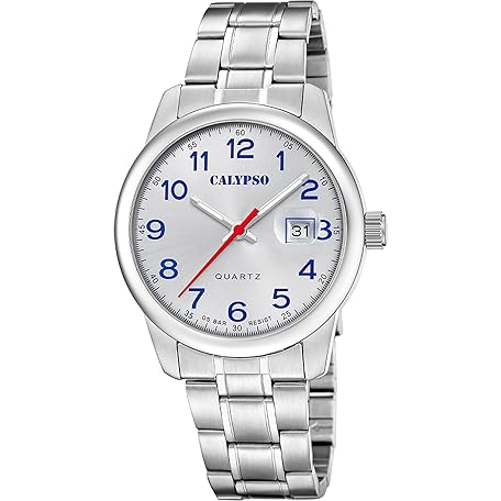 • Calypso Herrenuhr Analog Edelstahl 316L Silber - Quarz - Datum - Gehärtetes Mineralglas - Wasserdicht 5 ATM K5872/2 Basic