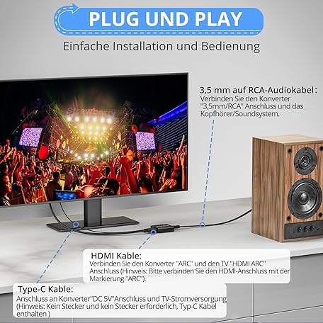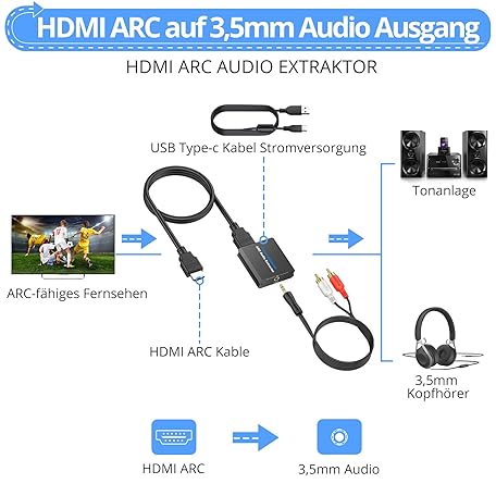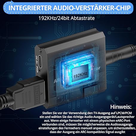 Thông tin sản phẩm CAMWAY HDMI ARC Audio Extractor, 192 kHz HDMI Audio Splitter 3.5 mm Stereo Audio Out, HDMI ARC Adapter with 1 m HDMI Cable for Amplifier, Soundbar, Home Cinema System etc