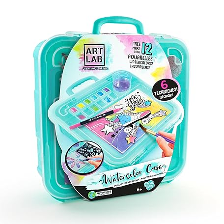Canal Toys - Art Lab ART 012 Watercolour Case with 12 Watercolour Paints and Art Supplies Kit for Children, 1 Set, Multi-Coloured