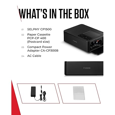 Thông tin sản phẩm Canon SELPHY CP1500 Compact Photo Printer - Wireless Printing, Durable Photos, USB-C & SD Card Port - Perfect for Scrapbooks and Photo Albums (Black)