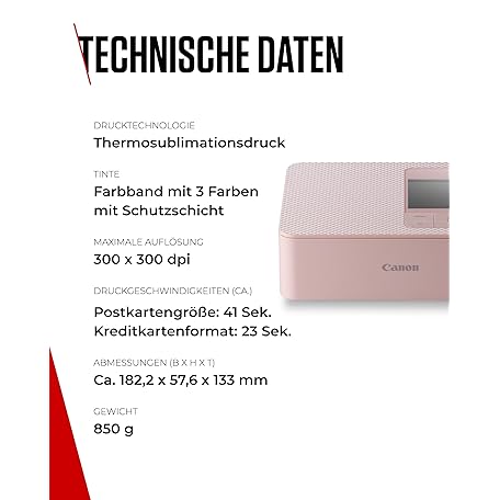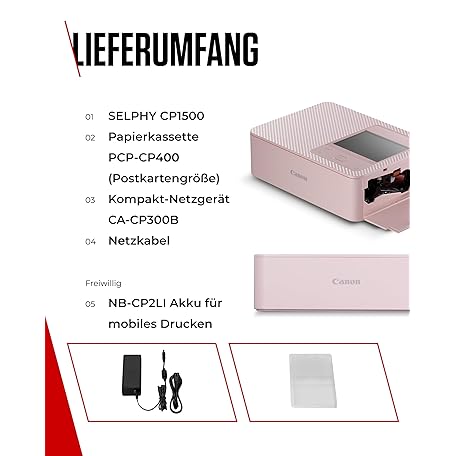 Thông tin sản phẩm Canon SELPHY CP1500 Compact Photo Printer - Wireless Printing, Durable Photos, USB-C & SD Card Port - Perfect for Scrapbooks and Photo Albums (Pink)