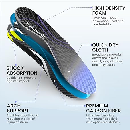 Thông tin sản phẩm Carbon Fiber Insole for Men & Women - Sumiwish(1 Pair)High Arch & Rigid Support Shoe Insert for Women & Men - Rigid Support for Turf Toe, Foot Fractures, Hallux Rigidus - Women’s 5.5-6.5,Men’s 5.5-6.5