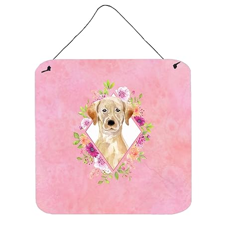 Carolines Treasures Wanddekoration, gelbes Labor, rosa Blumen, Mehrfarbig